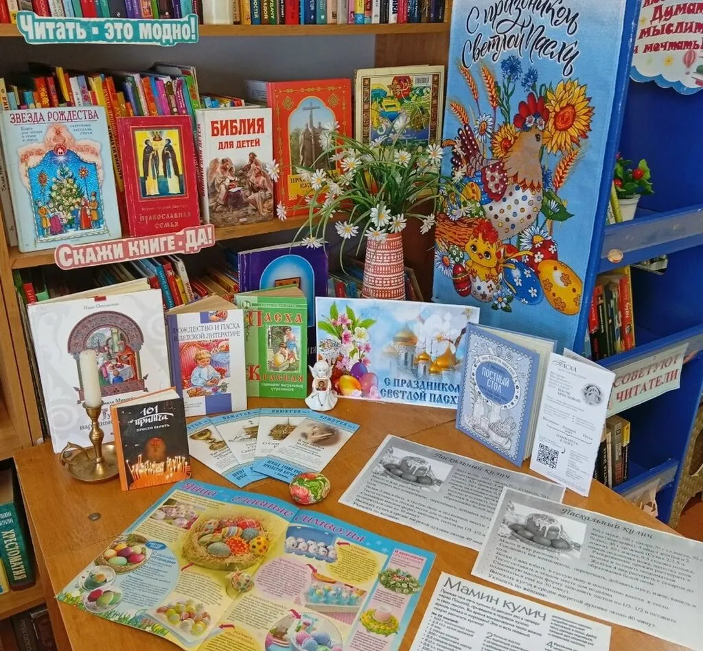 Покровский отдел приглашает читателей посетить книжную выставку «Праздник света, праздник веры!», которая поможет окунуться в предпраздничную атмосферу подготовки к самому светлому празднику – Пасхе, а также прикоснуться к традициям, пришедшим к нам из глубины веков. На выставке представлена литература, которая расскажет нашим читателям об истории праздника, ответит на насущные вопросы: почему мы приветствуем друг друга словами «Христос Воскресе», почему освящаем куличи, яйца и пасху, какие традиционные угощения нужно ставить на праздничный стол. Также можно познакомиться и узнать старинные и новые рецепты пасхальных блюд, способы окрашивания важного религиозного символа – пасхального яйца, а также рецепты пасхальных куличей и кексов. У выставки библиотекарь проводит беседы и обзоры.